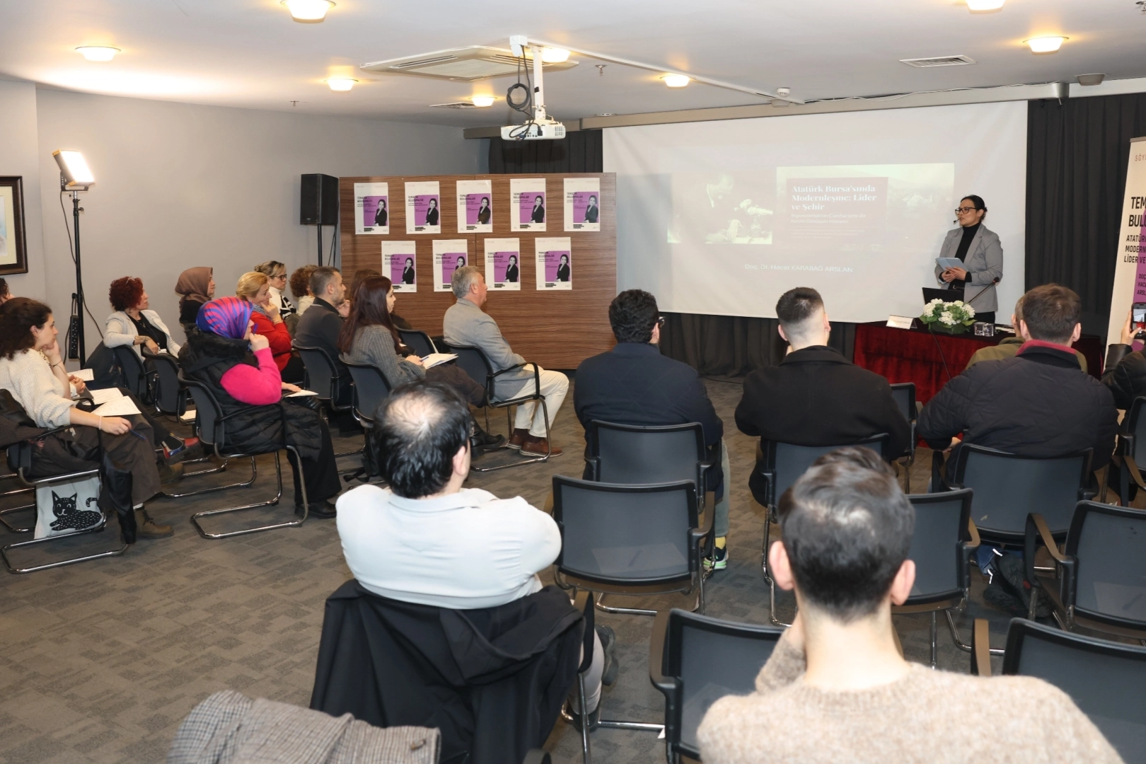 BURSA (İGFA) - Nilüfer Belediyesi tarafından düzenlenen “Tematik Buluşmalar” söyleşisinin bu ayki konuğu, Bursa Uludağ Üniversitesi (BUÜ) Fen-Edebiyat Fakültesi Tarih Bölümü Öğretim Üyesi Doç. Dr. Hacer Karabağ Arslan oldu. Nazım Hikmet Kültürevi’nde düzenlenen “Atatürk Bursa’sında Modernleşme: Lider ve Şehir” başlıklı söyleşide Arslan, Atatürk’ün Bursa’ya gerçekleştirdiği ziyaretlerin arka planını ve kentin sosyal, ekonomik ve kültürel değişimini katılımcılara aktardı.