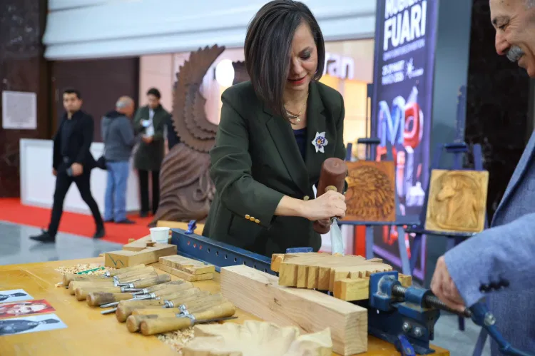 Belediye çalışanı ahşap oyma ustası Numan Nacaroğlu’nun eserlerinin yer aldığı stantta, Nacaroğlu fuar boyunca gerçekleştirdiği canlı uygulamalarla ziyaretçilerle buluşuyor.
